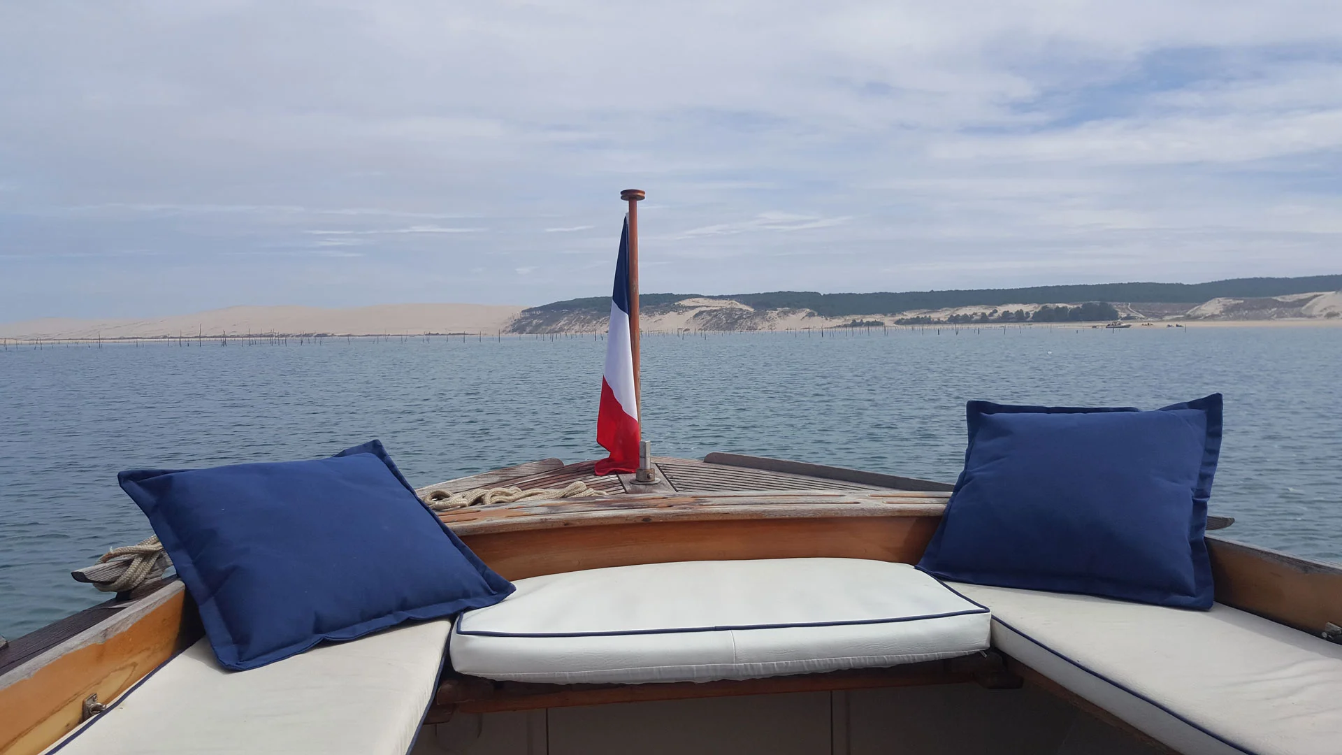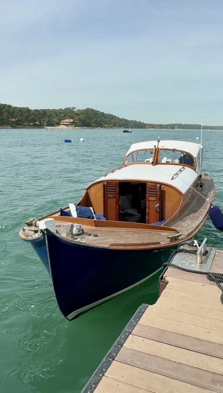 The Bassin d’Arcachon pinasse is a traditional wooden boat, typically around 11.5 m long and 3 m wide, with a flat bottom and shallow draft. Originally built for fishing and oyster farming, its sleek design allows easy navigation in the shallow waters of the basin. Today, pinasses are often motorized and adapted for leisure, family outings, or tourist cruises, remaining an iconic symbol of the Arcachon region’s maritime heritage and identity.