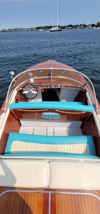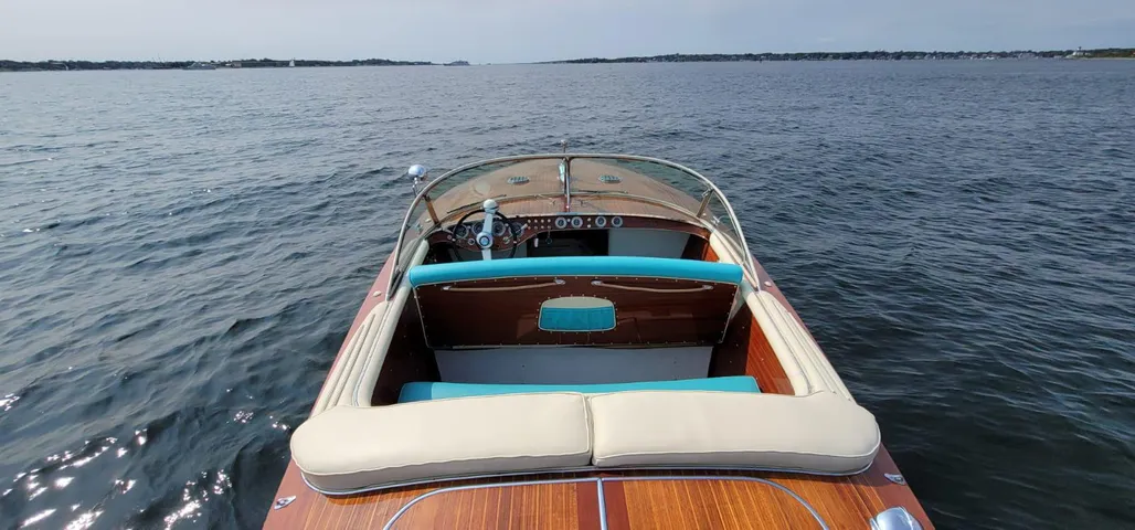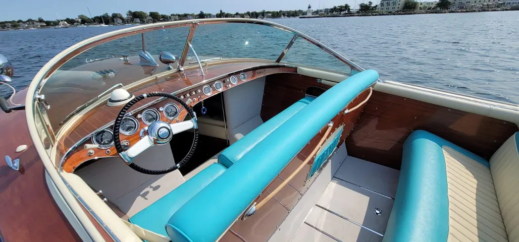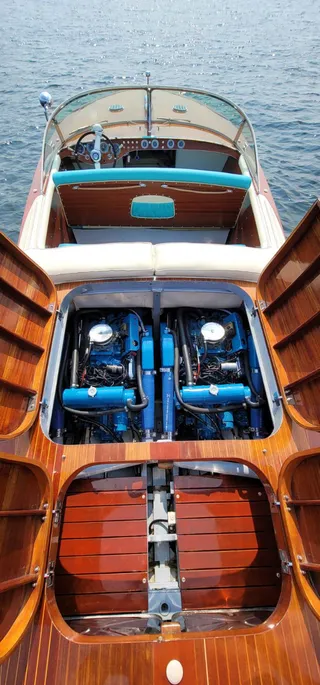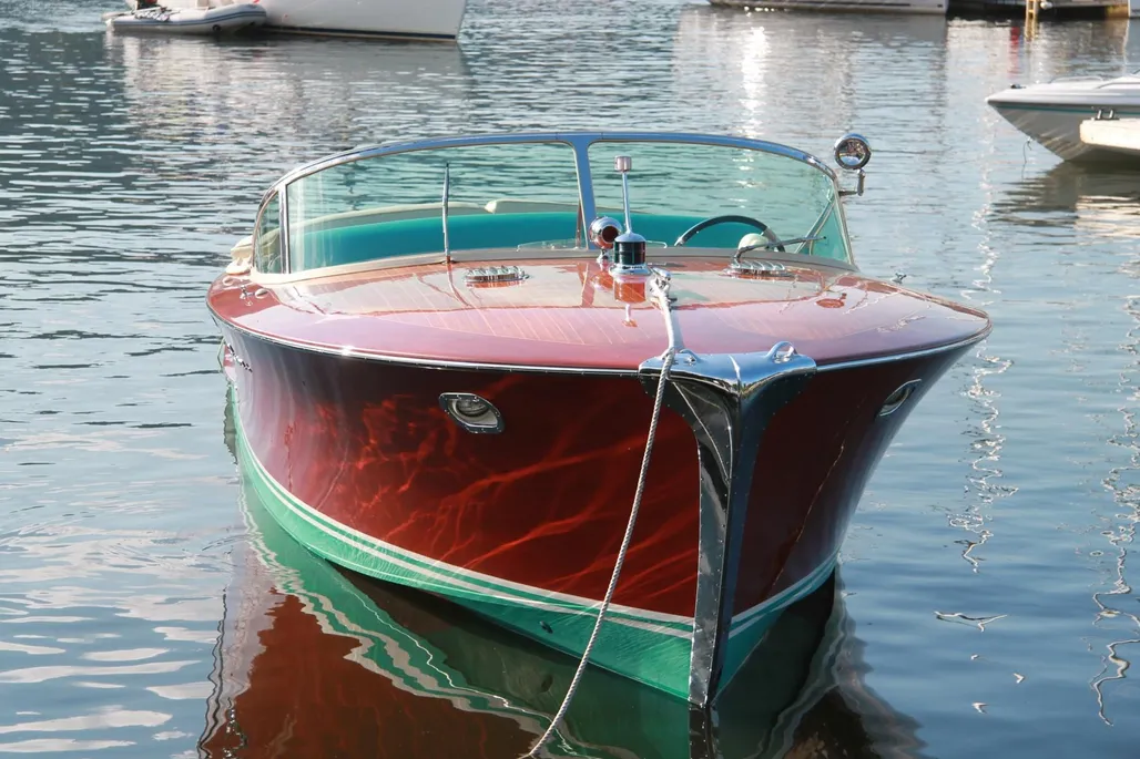 The Riva Tritone is an elegant 8-meter mahogany wooden boat produced in the 1950s and 60s. Powered by two Chris-Craft MCL 6-cylinder engines of 175 hp each, it reaches a top speed of around 35 knots. Known as the “boat of kings,” this model was favored by royal families and celebrities, including Prince Rainier III and Princess Grace of Monaco.