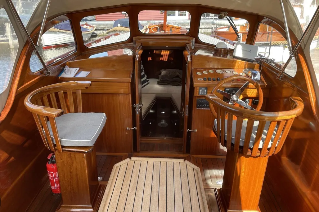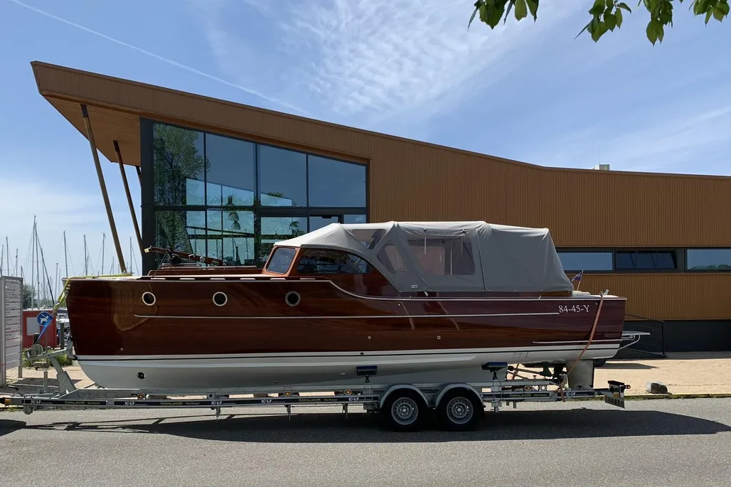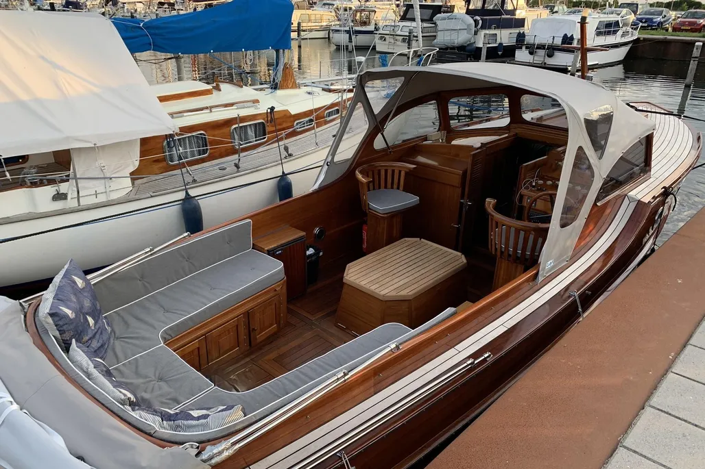 Le Rapsody 29 Ft est un yacht moteur semi-déplacement d’environ 8,75 mètres de long et 2,45 mètres de large, construit dans les années 2000. Il est équipé d’un moteur diesel Yanmar 4JH3-HTE de 100 chevaux, garantissant une vitesse maximale d’environ 24 km/h. Son tirant d’eau est faible, environ 65 cm, ce qui lui permet de naviguer aisément dans des zones peu profondes. L’intérieur allie confort et finition classique avec des espaces pour dormir jusqu’à quatre personnes, une cabine chaleureuse avec des accents en acajou, et un pont en teck. Ce bateau est idéal pour les croisières relaxantes sur les eaux intérieures et les grands lacs.
