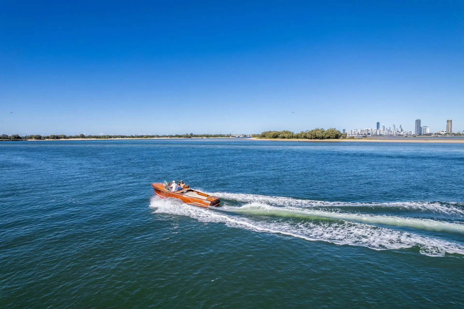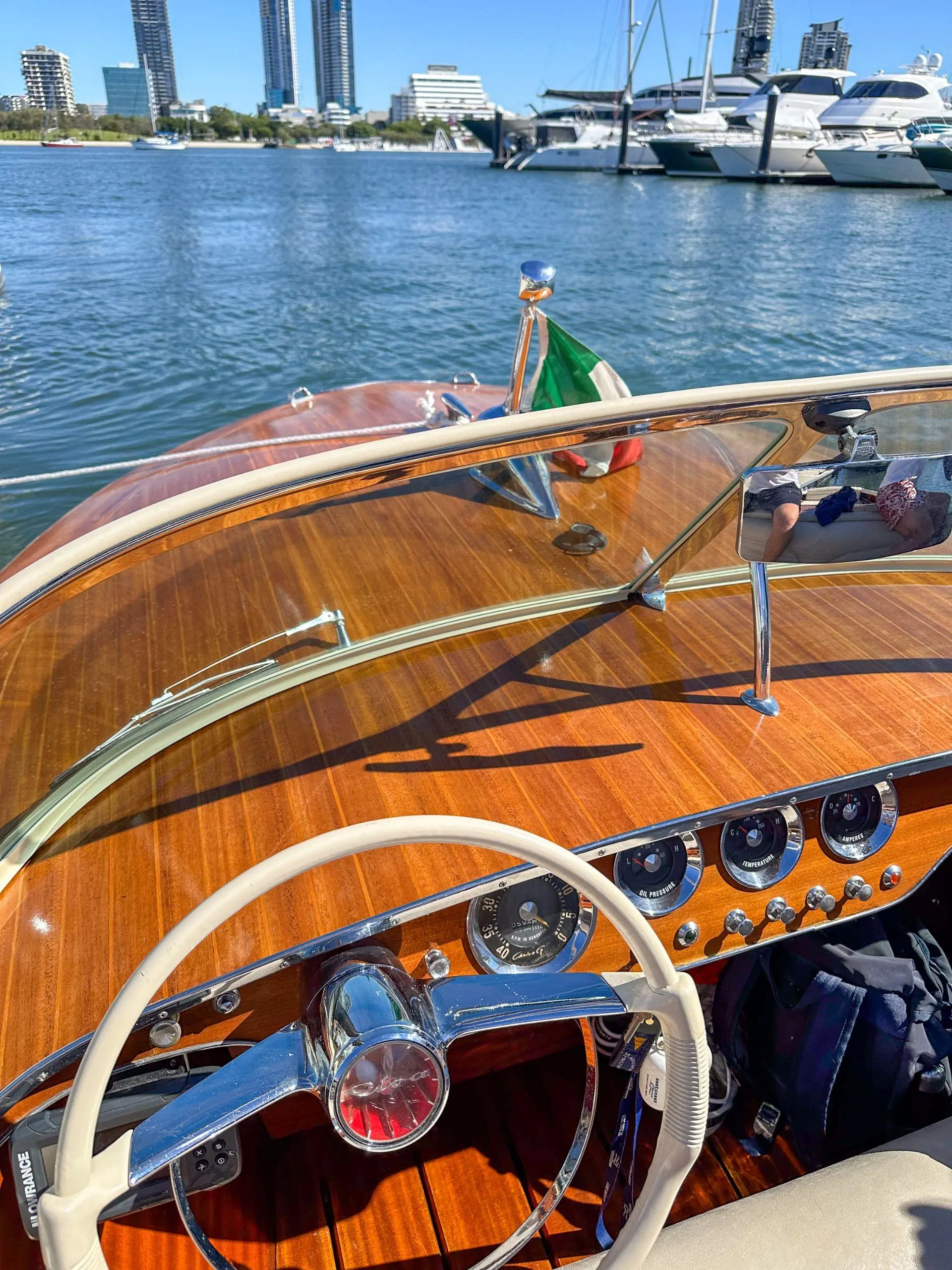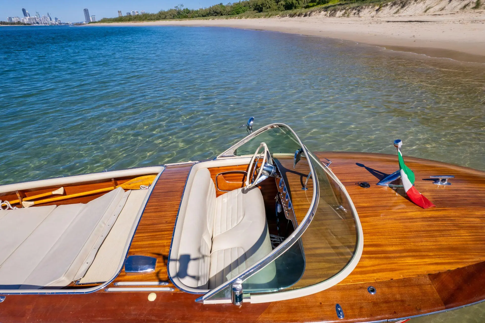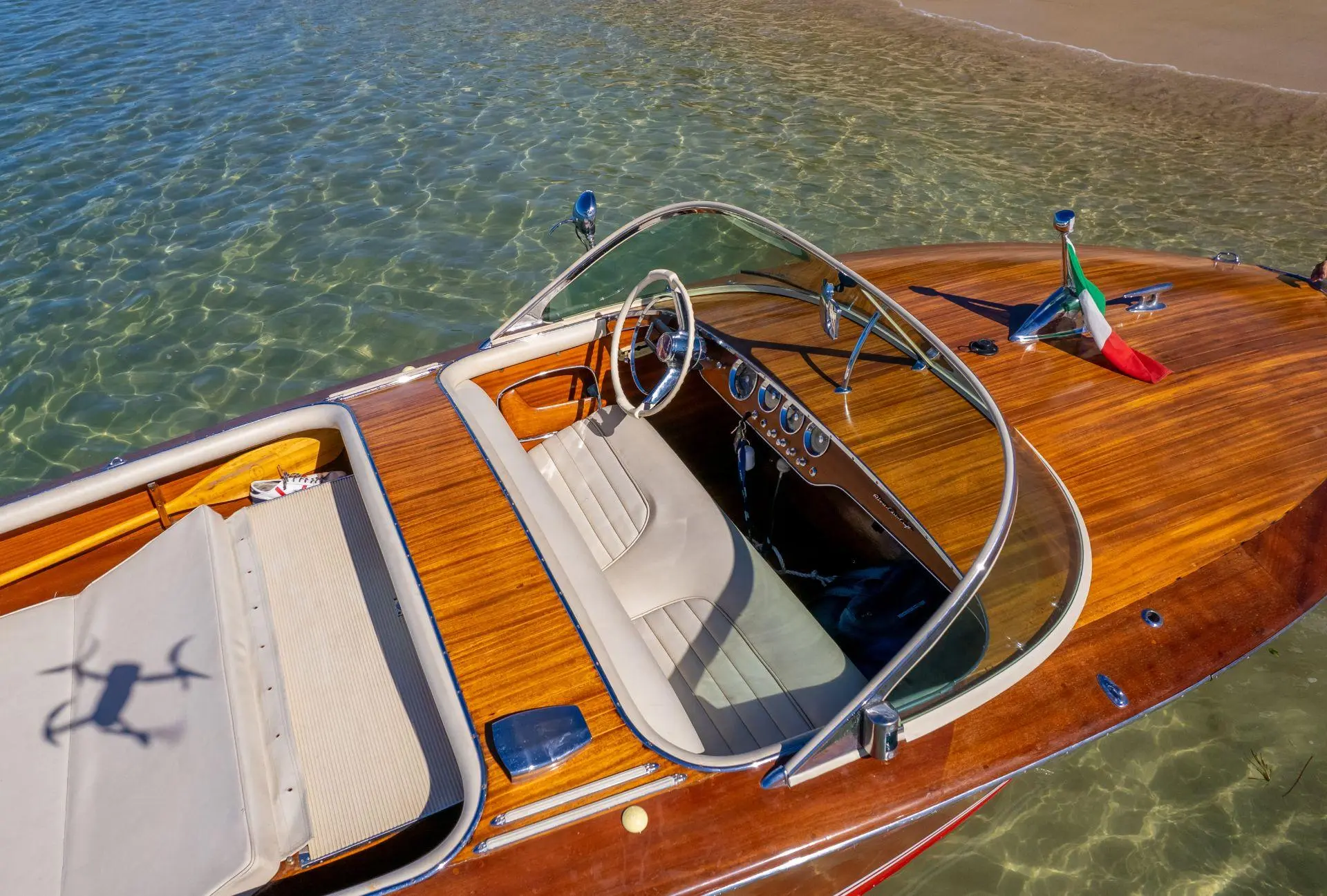 Le Riva Super Florida est un bateau classique de 6,10 m construit en bois d’acajou avec une finition brillante. Propulsé par un moteur Chrysler V8 de 177 chevaux, il atteint une vitesse maximale d’environ 35 nœuds. Connu pour son design élégant et sa qualité artisanale, il incarne le luxe et le charme des années 1960.